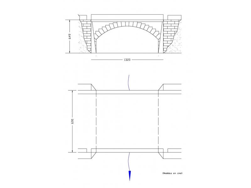 Inicialmente había sido proyectado un pontón escarzado de 8m de luz cimentado sobre la roca, pero la disposición oblicua de la carretera respecto del rio impedía colocar los estribos sobre la roca, obligando a  excavar hasta llegar a un afloramiento rocoso, lo que encarecía mucho la construcción.